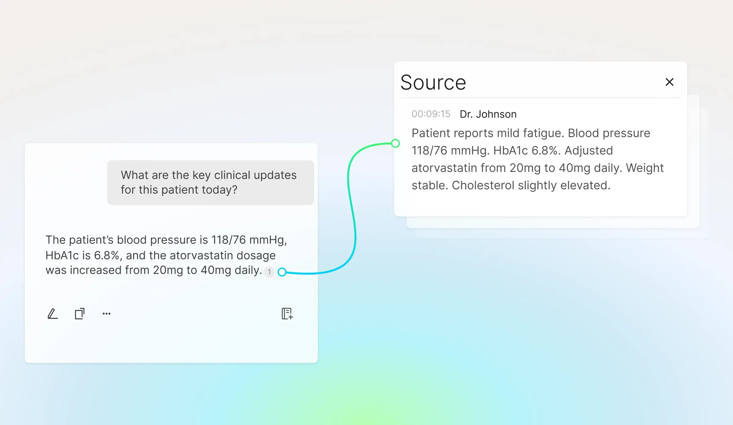 Snap test results, reports, or scans in one motion. Visual data aligns automatically with your notes, creating a unified patient record.