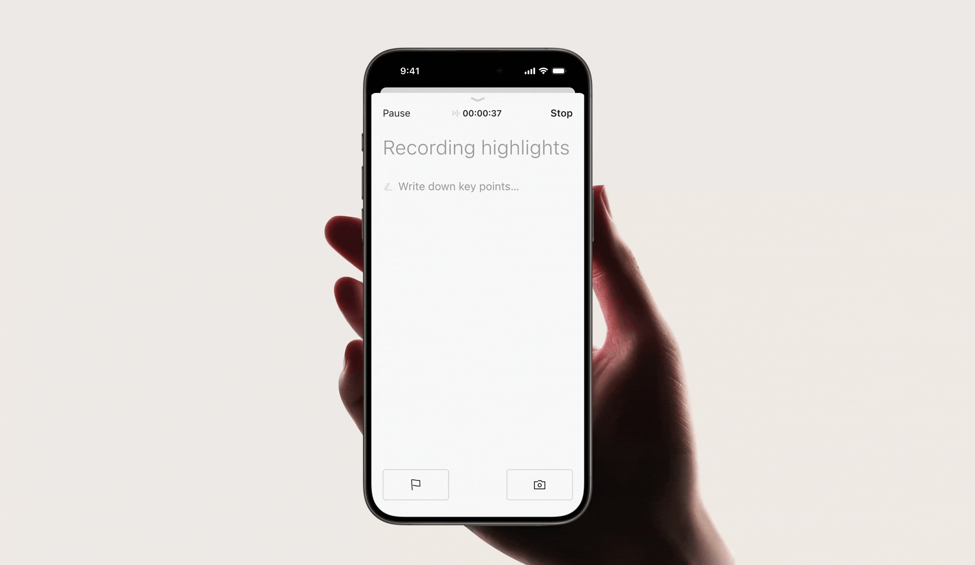 Highlight clinical insights with a short press. Plaud marks each moment precisely, signaling AI to prioritize key symptoms and context.
