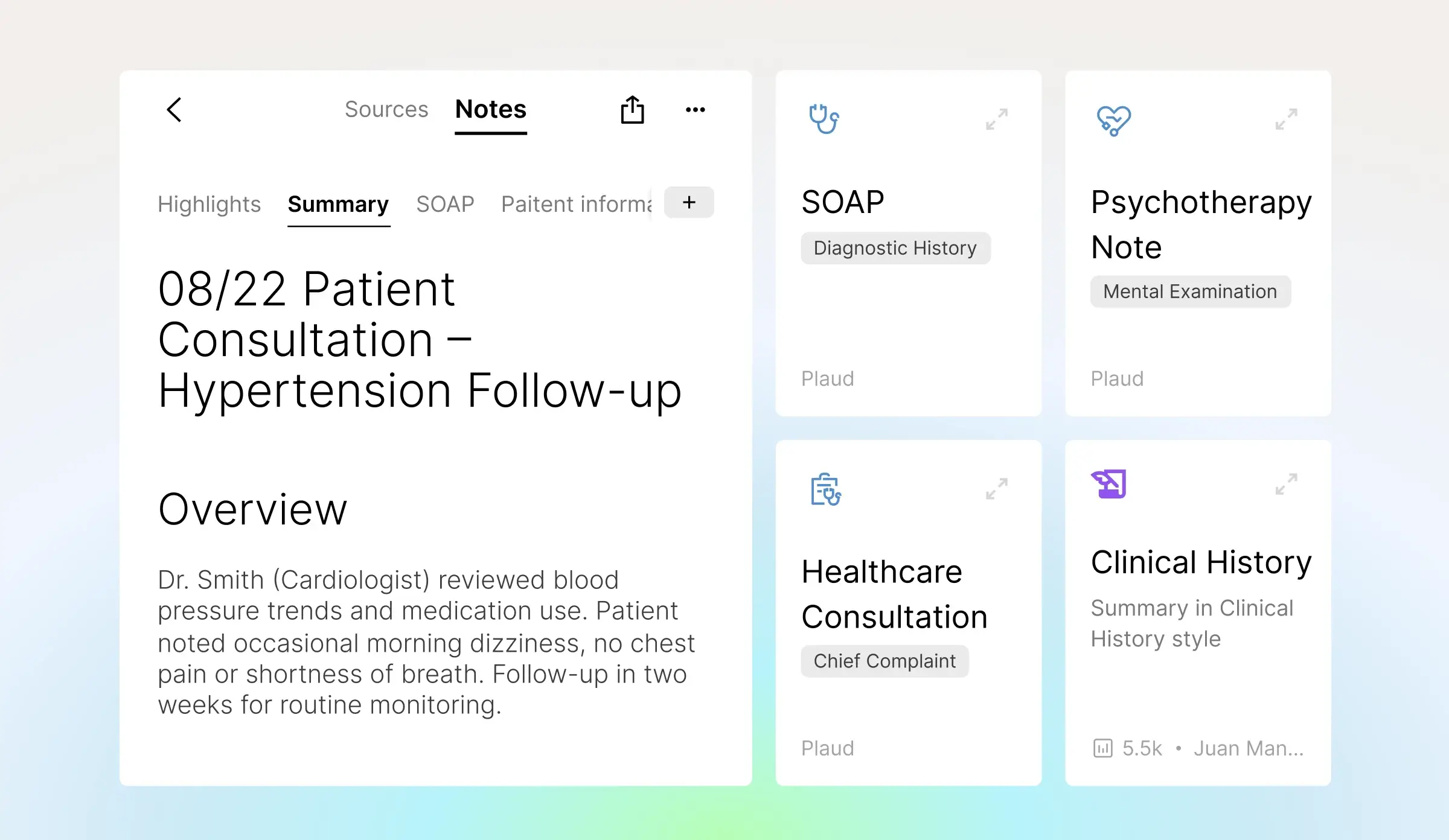 Plaud transforms clinical conversations into structured documentation ready for your workflow, including: